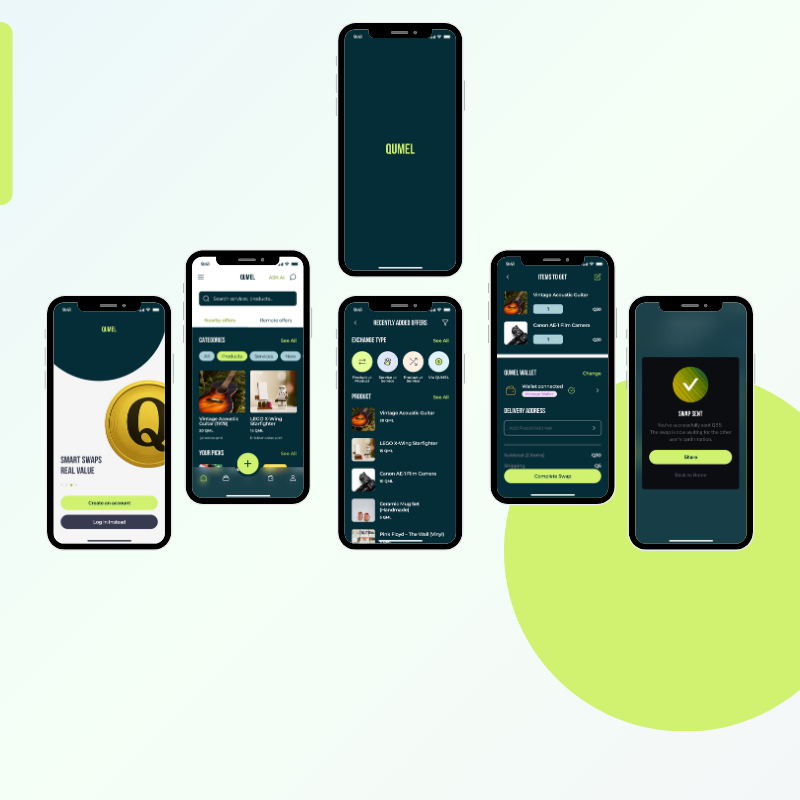 QUMEL is a mobile app for peer-to-peer trading, enhanced by AI matchmaking and a token-based reward system. It offers users fast, secure exchanges of services or products, with intuitive flows and a gamified experience powered by QML tokens.
