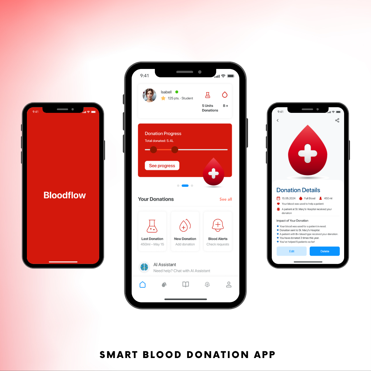 An innovative iOS application designed to simplify blood donation tracking and encourage users to donate regularly. The goal was to create a modern, intuitive, and engaging experience that makes blood donation feel rewarding while maintaining a clean and minimalistic medical aesthetic.