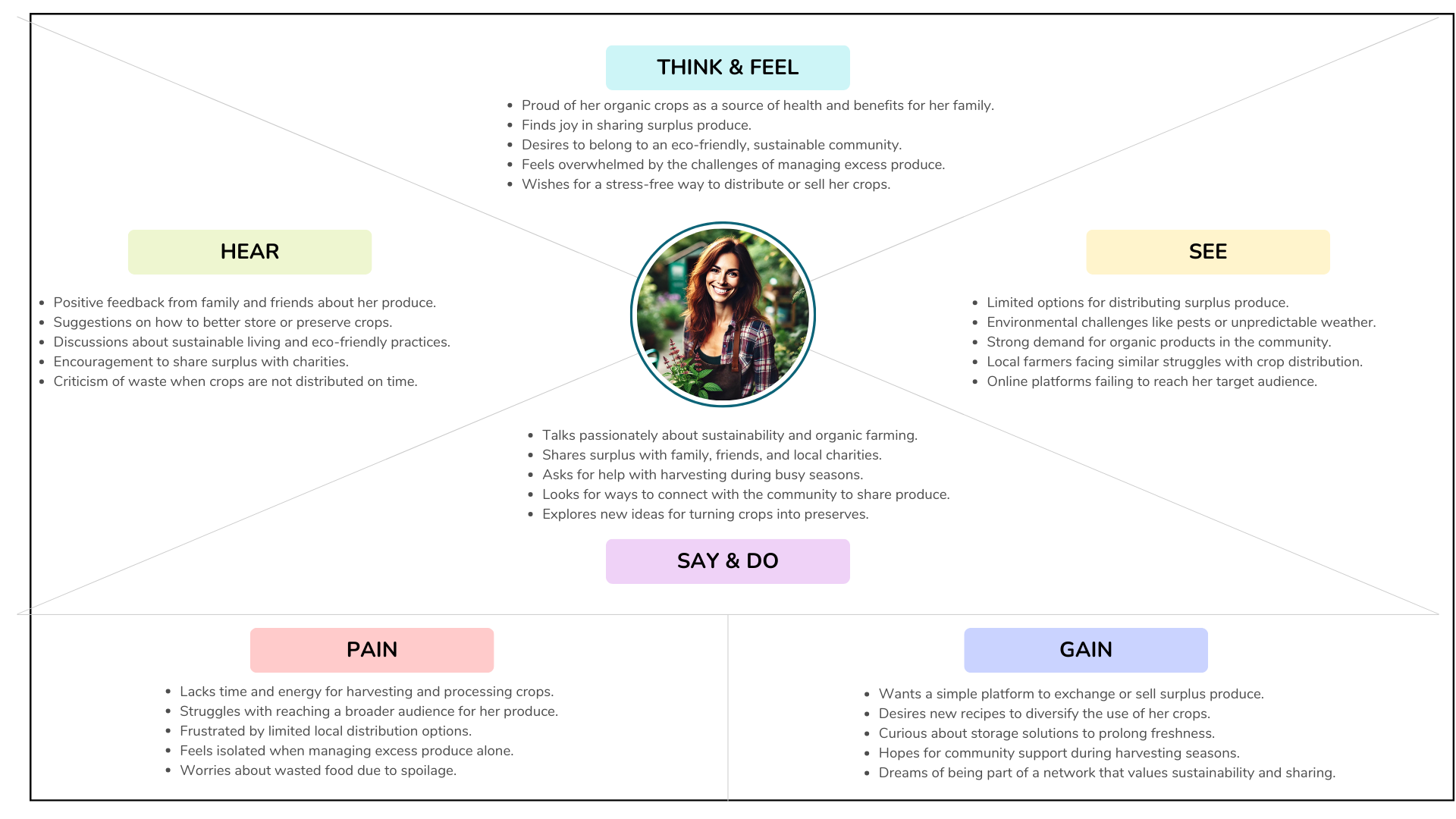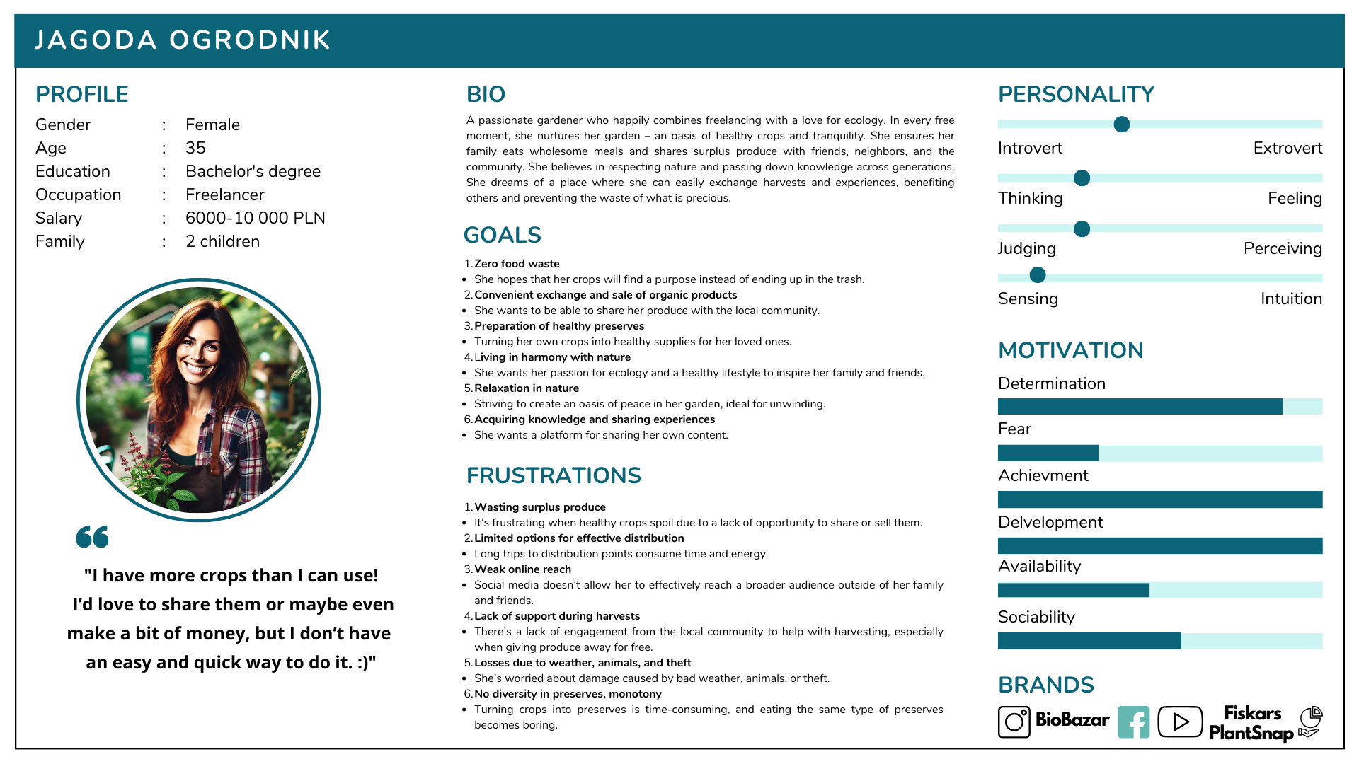 - 👩🌾 Persona: Jagoda, an eco-conscious gardener, struggles with managing surplus crops and lacks platforms for eco-friendly exchanges.